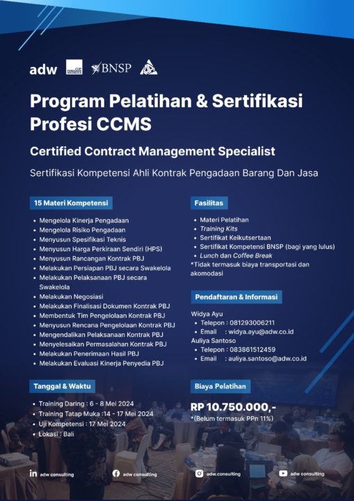 Program Pelatihan dan Sertifikasi Profesi Manajemen Kontrak (Certified Contract Management Specialist – CCMS)